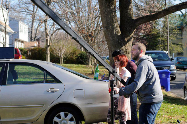 DP Allen Chodakowski and Director Sassy Mohen set the shot